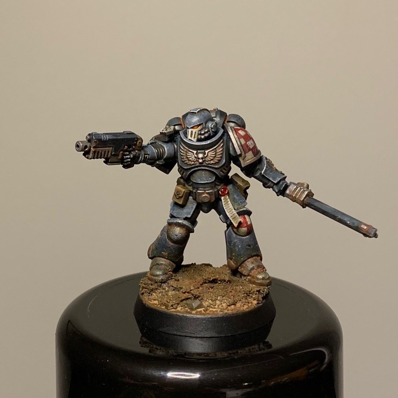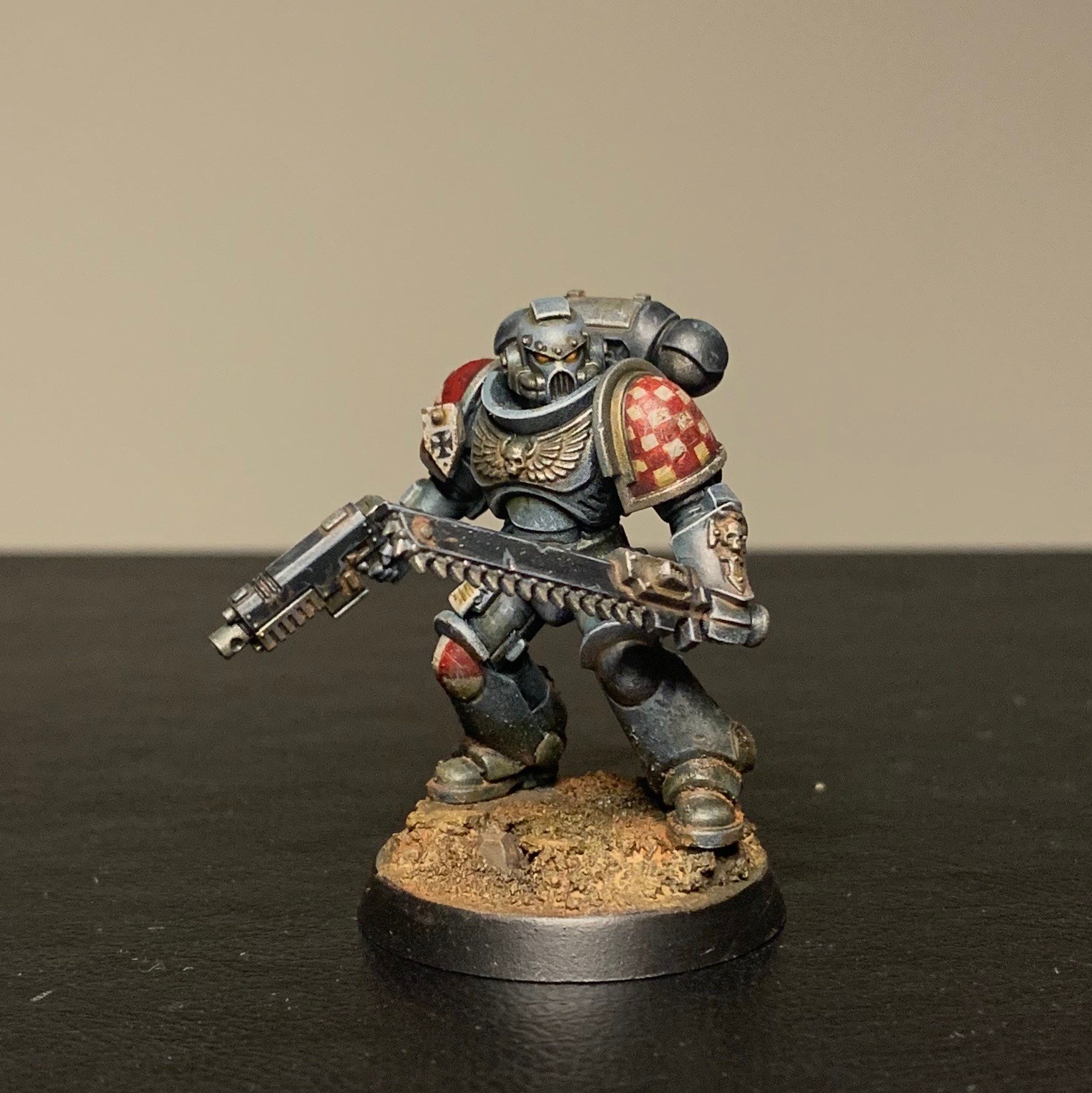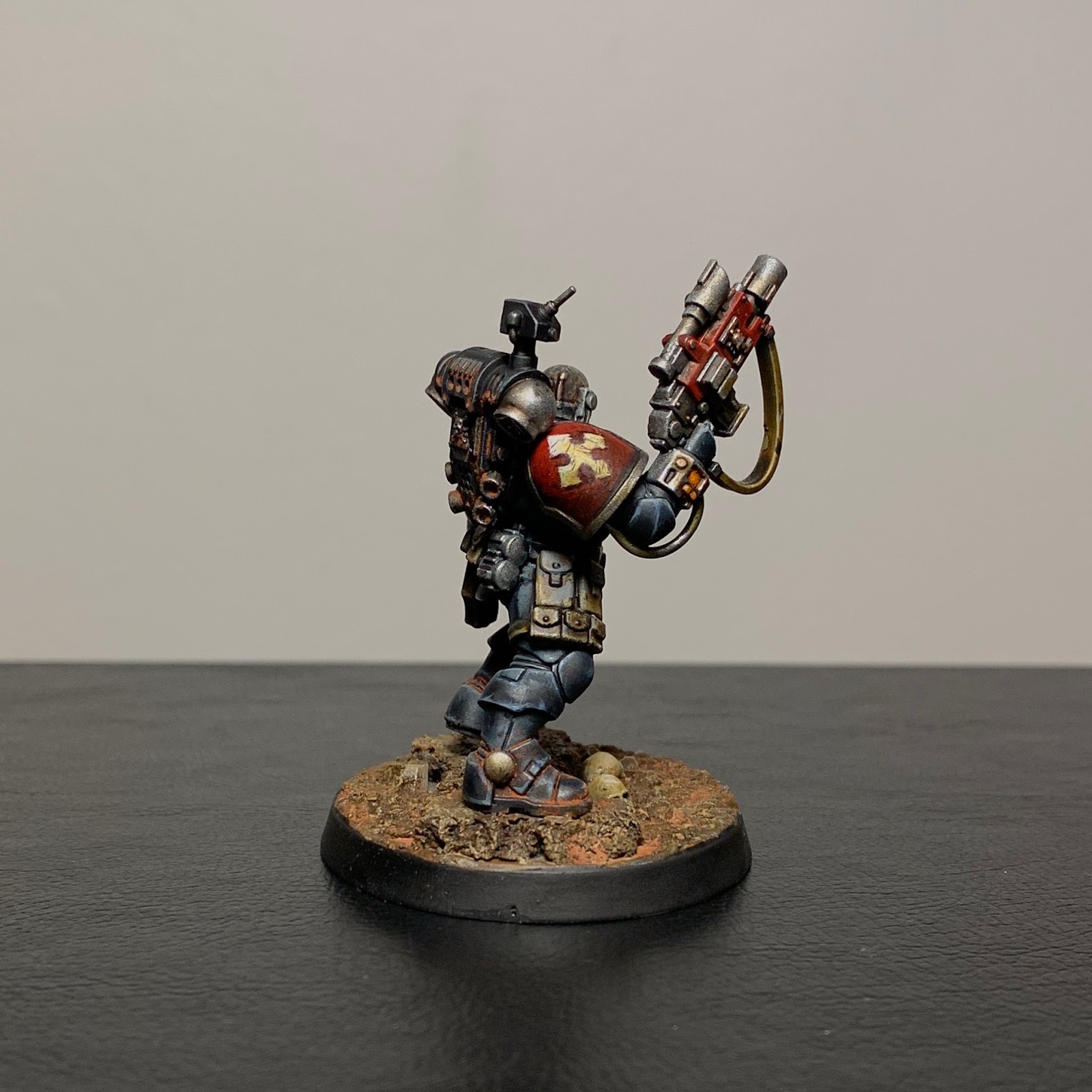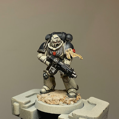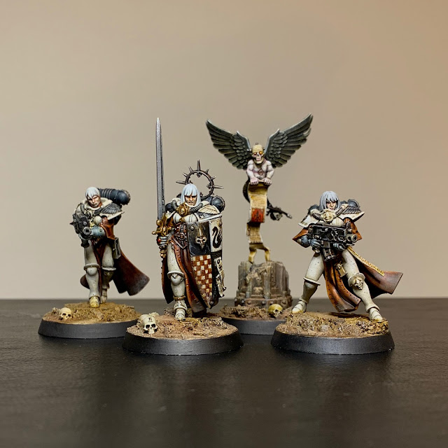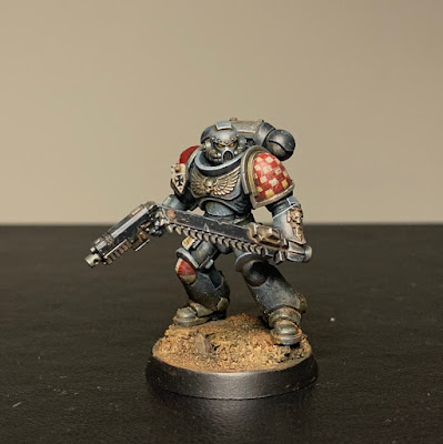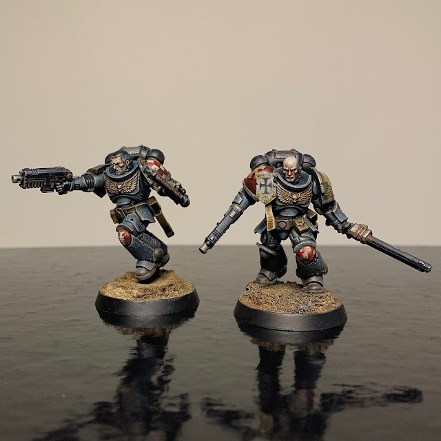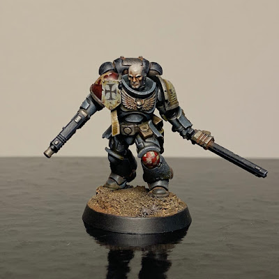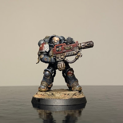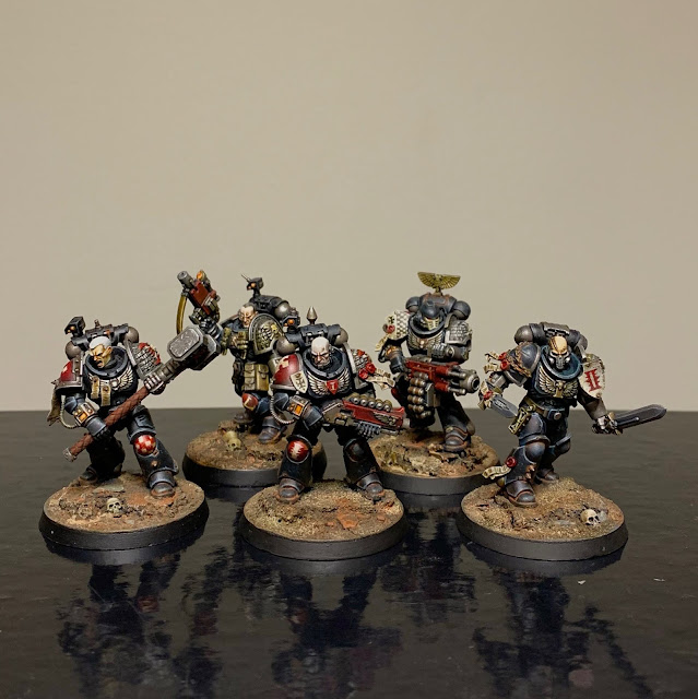 In September and October I've been trying to get the marine-y stuff from the Indomitus-box painted up - aiming for a patrol size force of Metatron chapter Astartes. So far I've finished: